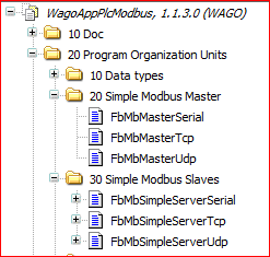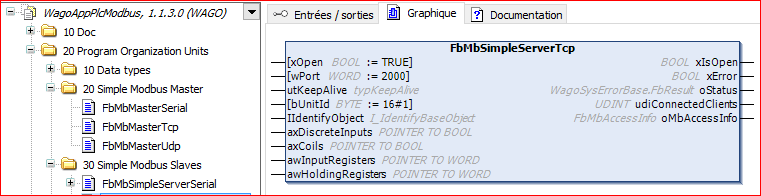 Cette bibliothèque est, lors de la rédaction de cet article, à sa version 1.1.3.0 et elle comporte les blocs fonctionnels nécessaires à la gestion d'une communication Modbus, que ce soit en mode série ou en mode Ethernet.