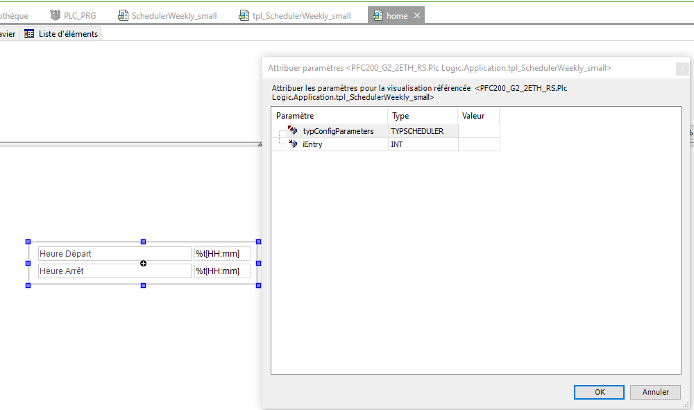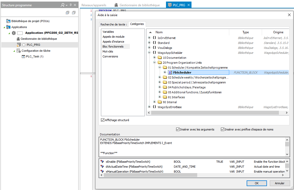 Nous allons ensuite insérer un bloc fonctionnel "FbScheduler" afin de gérer nos plages horaires